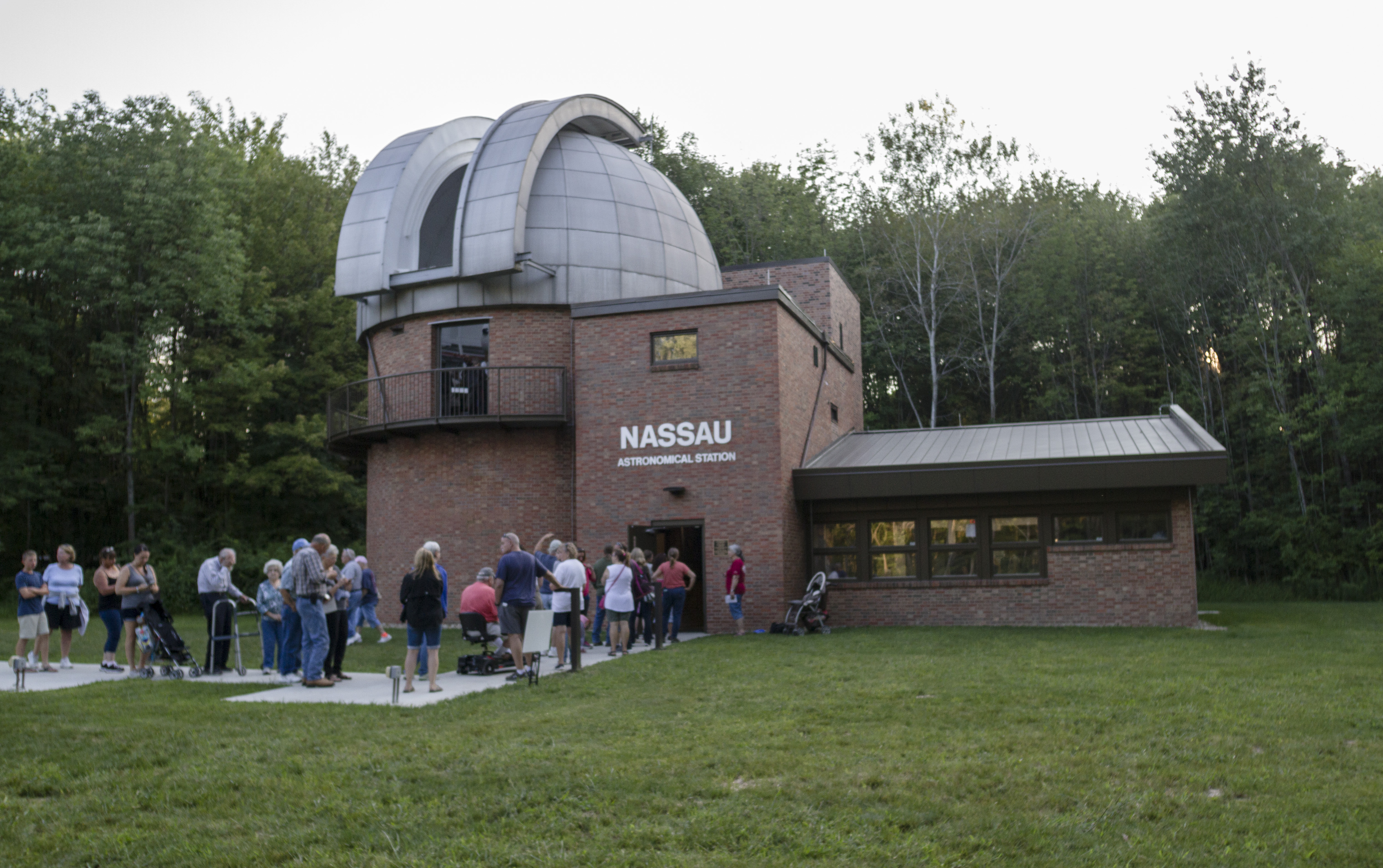 On Saturday, August 19, the Park District held a grand opening to introduce the newly re-opened Nassau Astronomical Station located adjacent to Observatory Park. The renovated observatory building now houses a space museum as well as the newly refurbished thirty-six inch Schmidt Cassegrain telescope that was built by Warner & Swasey in the 1950s. A crowd of several thousand people showed up for this event. Both parking lots were filled to overflowing with cars parked on both sides of the park access roads and for hundreds of yards along Clay Street.