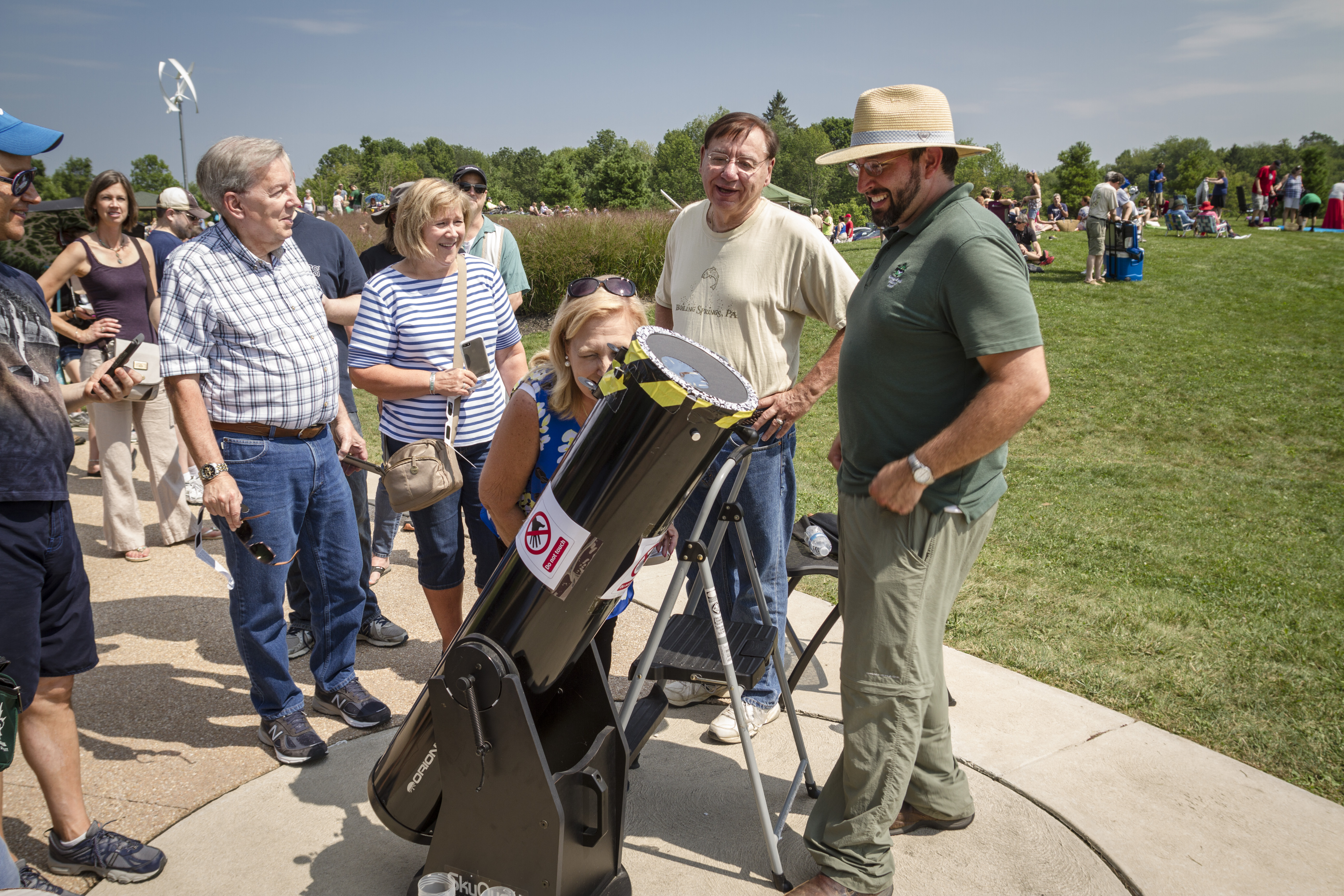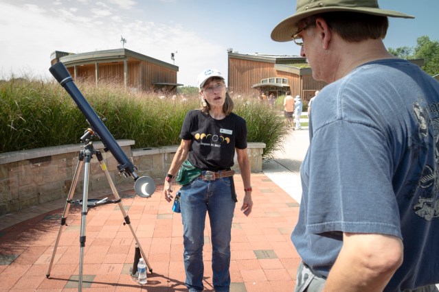Then on Monday, August 21, Observatory Park was once again flooded with visitors who came to watch the solar eclipse. The eclipse could have been seen from almost anywhere, but thousands of people of all ages flocked to Observatory Park to witness this natural wonder. The Park District naturalists, staff members and volunteers are to be commended for preparing informative, educational experiences that were exciting and very creative. The social atmosphere at both of these events was inquisitive, relaxed and cheerful despite the long lines for some programs on Saturday and the searing heat on Monday.