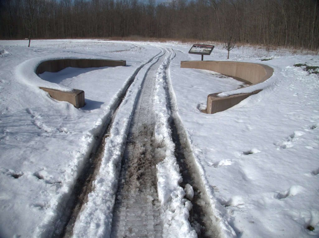 However, as we had warned, the rules for snowmobile use established by the Park District were no barrier to at least one irresponsible individual who, apparently later that day, drove a snowmobile off the assigned trail and through the permanent outdoor displays including the planetary trail at the park. The planetary trail creates a large-scale perspective of the solar system with individual stations that include a multi-faceted educational presentation on each planet. This includes a colorful base of minerals at each station representing the predominant color of the planet. How much of this will need repair once the snow melts to reveal the damage?