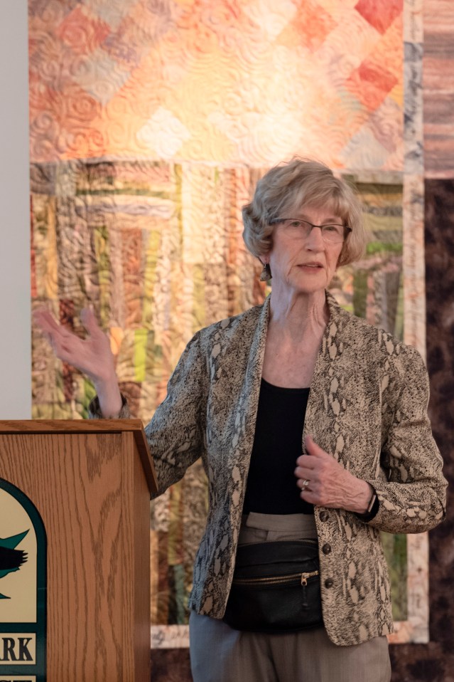 Photographer Linda Butler presented her slide show, Lake Erie on the Edge, to an audience of about fifty people in the Oak Room at West Woods Nature Center. Her photographs showed the great variety of landscape surrounding the lake, from heavily industrialized areas of Ohio and Michigan to pristine natural areas of Ontario. Her images of agricultural and mining activities in the Maumee Valley drove home the point that things happening far inland can have a tremendous influence on the water quality of the lake.