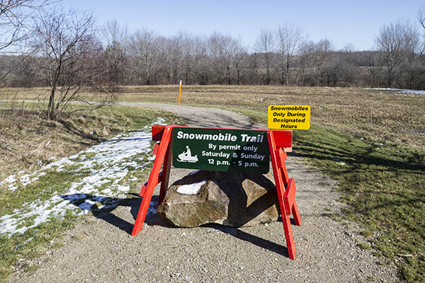 This trail is closed to anyone not holding a snowmobile permit regardless of the fact that conditions are, shall we say, less than optimal for snowmobiling.