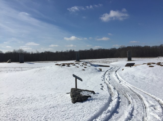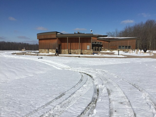 More snowmobile tracks on the solar system trail beyond the McCullough Center. These are