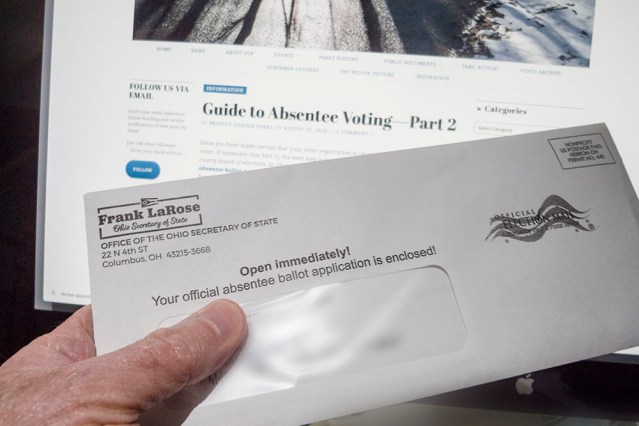 When you receive the actual absentee ballot, open it and mark your ballot as soon as possible. If there are candidates or issues you are unfamiliar with, take the time to do some research so you can cast an informed vote—but don’t procrastinate. Your ballot must be received by the board of elections by election day, November 3 at closing time. If you want to return the ballot by mail, that means you need to get it to the Post Office in time to meet that deadline. These days, no one really knows for sure how much time it will take for the USPS to make that delivery.